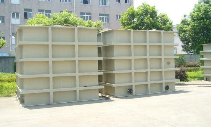 一種工業廢水降解槽,包括鼓泡池,所述鼓泡池內設有隔板,所述隔板將所述鼓泡池分割為若干分布于同一直線上的水槽,所述水槽設有溢流口,相鄰的水槽中的溢流口沿垂直于溢流槽分布方向的方向錯開,溢流口部位距離水槽底面的高度為6~13厘米。水槽分布于同一直線且溢流口彼此錯開,能夠優選防止廢水流過水槽時產生回流現象。水槽內的水深只能為6~13厘米。更容易混合均勻,且不容易生產噴濺現象。
