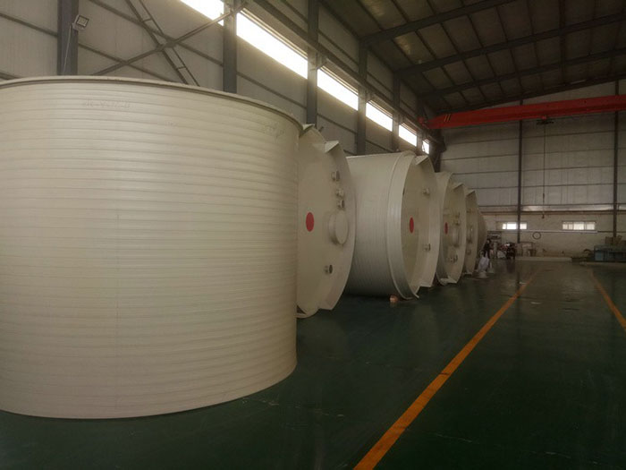 3、進入PP反應釜應穿潔凈膠鞋入內察看玻璃襯里是否完好,法蘭及接管部位緊固,以免因局部受力過大,導致搪玻璃表面的損壞。